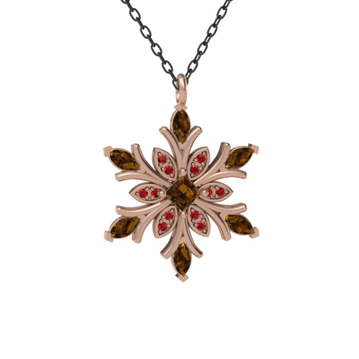 Dumanlı kuvars ve garnet 925 ayar rose altın kaplama gümüş kolye (40 cm gümüş rolo zincir)