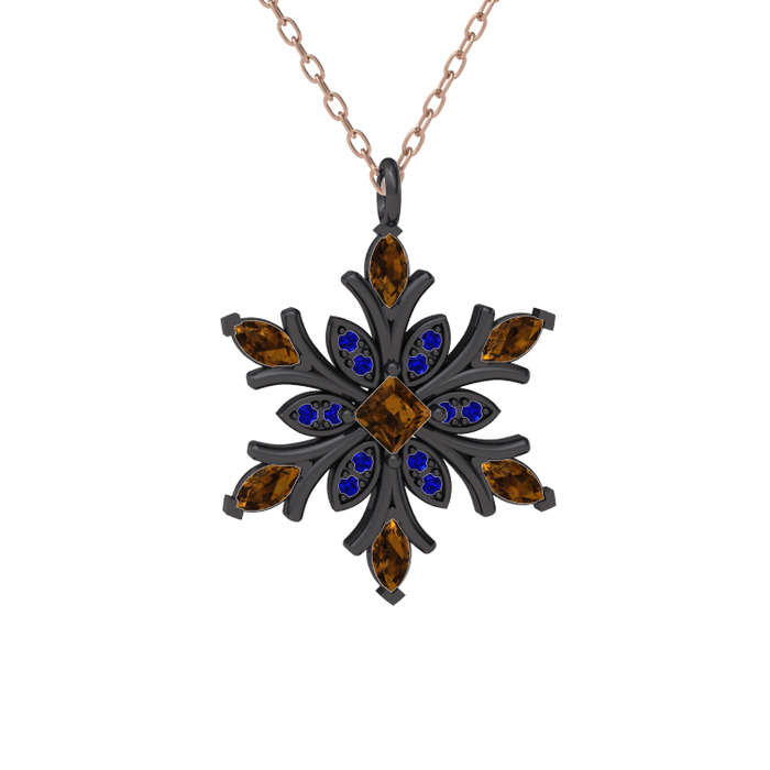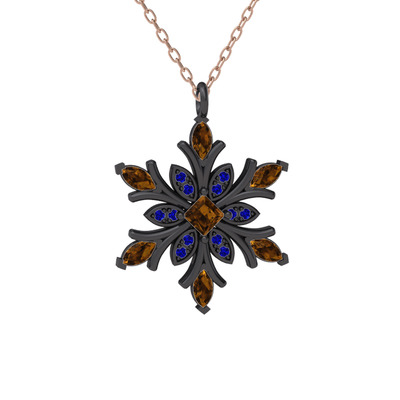 Dumanlı kuvars ve lab safir 925 ayar siyah rodyum kaplama gümüş kolye (40 cm gümüş rolo zincir)