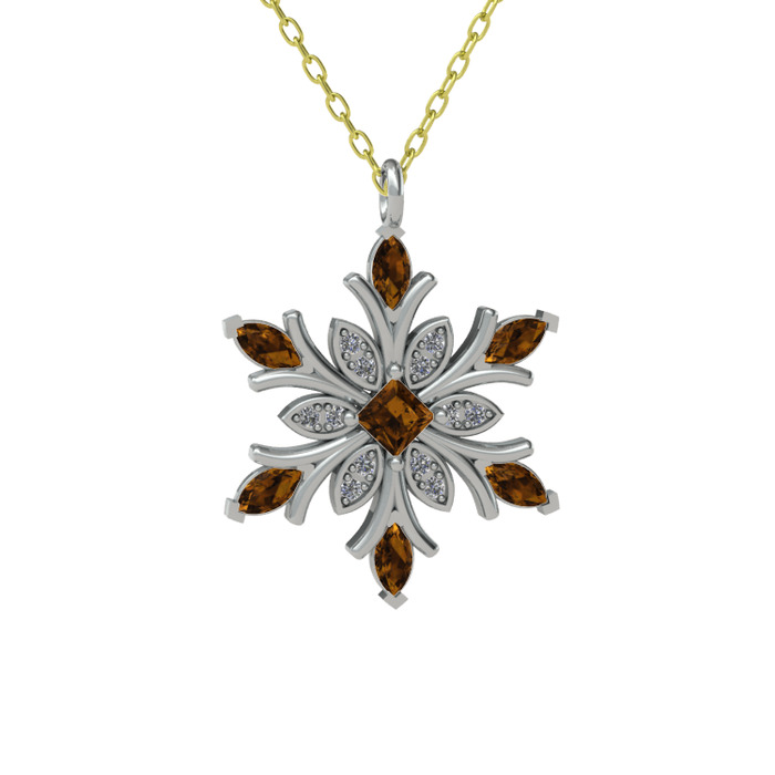 Dumanlı kuvars ve pırlanta 8 ayar beyaz altın kolye (0.1056 karat, 40 cm altın rolo zincir)