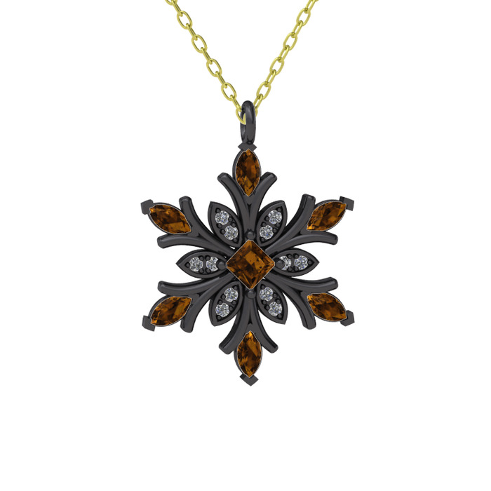 Dumanlı kuvars ve pırlanta 925 ayar siyah rodyum kaplama gümüş kolye (0.1056 karat, 40 cm altın rolo zincir)