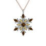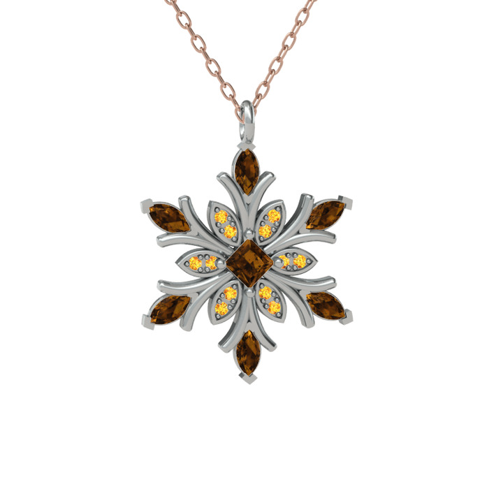 Dumanlı kuvars ve sitrin 8 ayar beyaz altın kolye (40 cm rose altın rolo zincir)