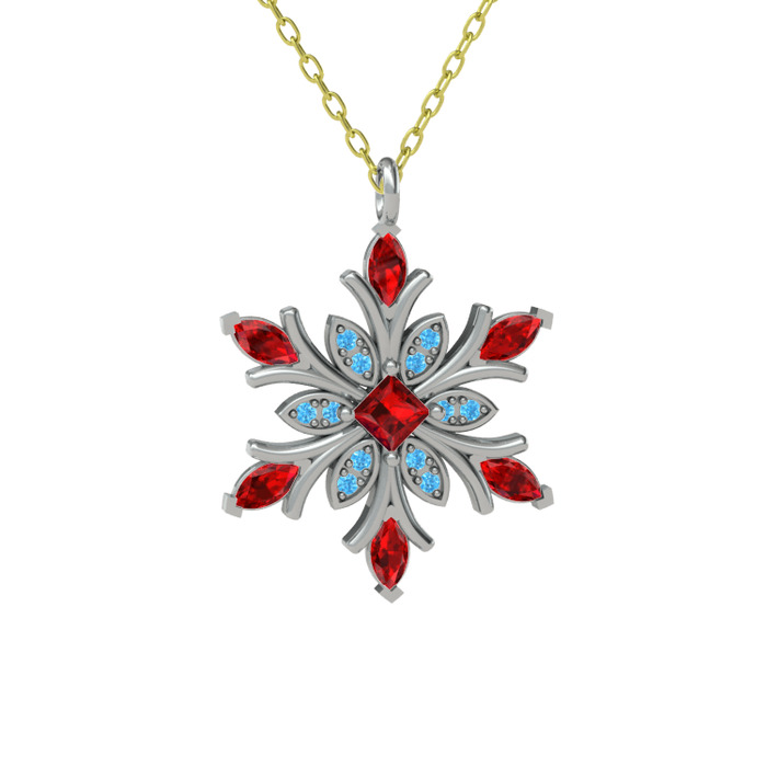 Garnet ve akuamarin 18 ayar beyaz altın kolye (40 cm altın rolo zincir)
