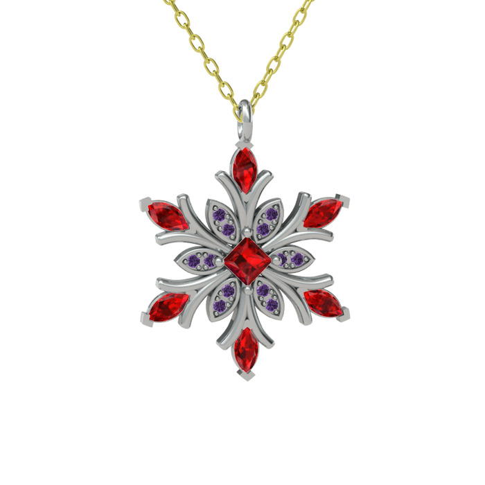 Garnet ve ametist 8 ayar beyaz altın kolye (40 cm altın rolo zincir)
