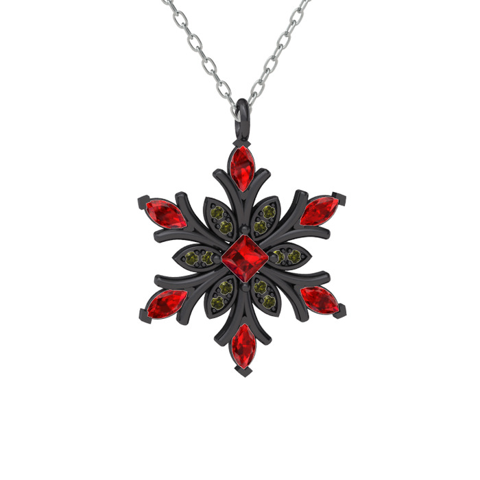 Garnet ve peridot 925 ayar siyah rodyum kaplama gümüş kolye (40 cm beyaz altın rolo zincir)