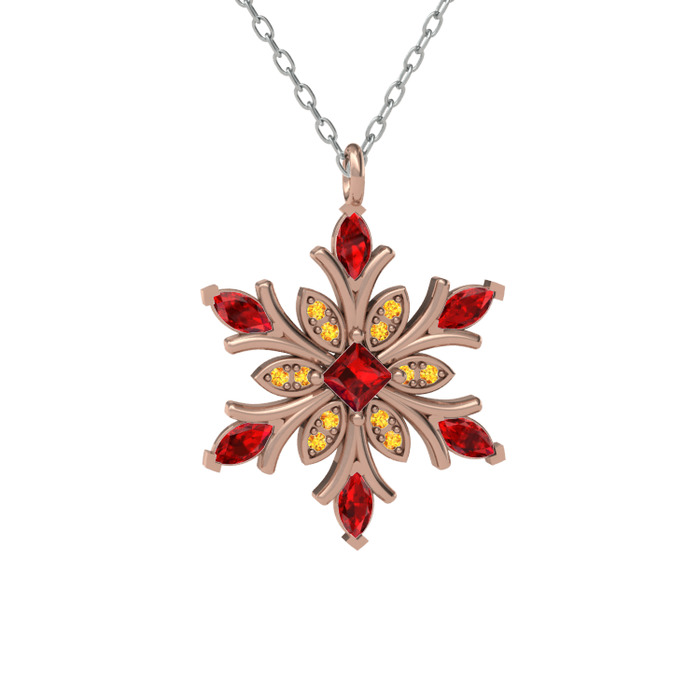 Garnet ve sitrin 8 ayar rose altın kolye (40 cm beyaz altın rolo zincir)