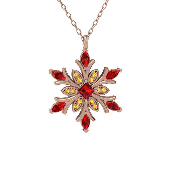 Garnet ve sitrin 925 ayar rose altın kaplama gümüş kolye (40 cm rose altın rolo zincir)