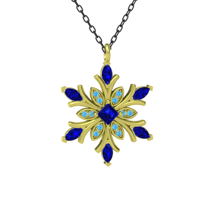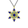 Lab safir ve akuamarin 14 ayar altın kolye (40 cm gümüş rolo zincir)
