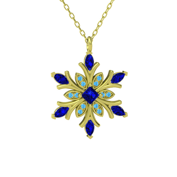 Lab safir ve akuamarin 8 ayar altın kolye (40 cm altın rolo zincir)