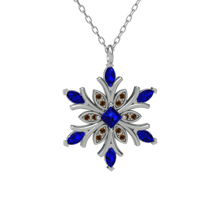 Lab safir ve dumanlı kuvars 18 ayar beyaz altın kolye (40 cm beyaz altın rolo zincir)