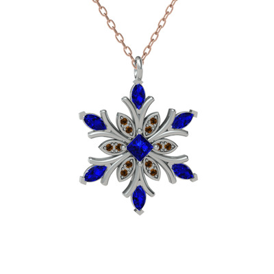 Lab safir ve dumanlı kuvars 18 ayar beyaz altın kolye (40 cm rose altın rolo zincir)
