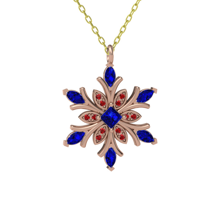 Lab safir ve garnet 14 ayar rose altın kolye (40 cm altın rolo zincir)