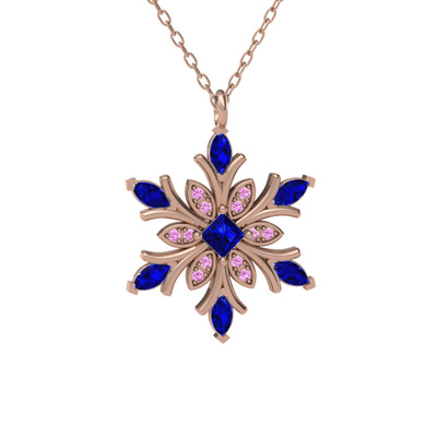 Lab safir ve pembe kuvars 14 ayar rose altın kolye (40 cm rose altın rolo zincir)