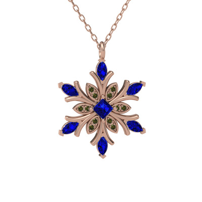 Lab safir ve peridot 8 ayar rose altın kolye (40 cm rose altın rolo zincir)