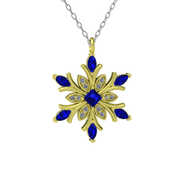 Lab safir ve pırlanta 14 ayar altın kolye (0.1056 karat, 40 cm beyaz altın rolo zincir)