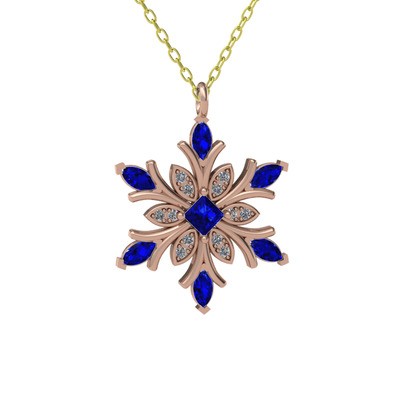 Lab safir ve pırlanta 18 ayar rose altın kolye (0.1056 karat, 40 cm altın rolo zincir)
