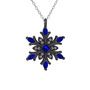 Lab safir ve pırlanta 925 ayar siyah rodyum kaplama gümüş kolye (0.1056 karat, 40 cm beyaz altın rolo zincir)
