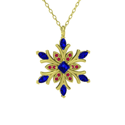 Lab safir ve rodolit garnet 18 ayar altın kolye (40 cm altın rolo zincir)