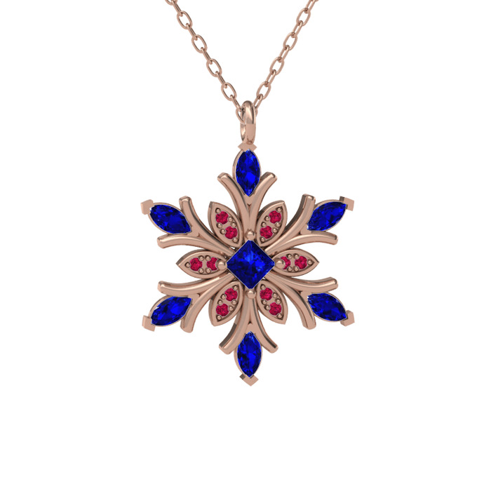 Lab safir ve rodolit garnet 18 ayar rose altın kolye (40 cm gümüş rolo zincir)