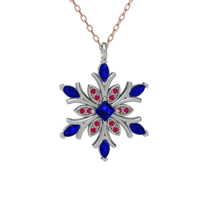 Lab safir ve rodolit garnet 8 ayar beyaz altın kolye (40 cm rose altın rolo zincir)
