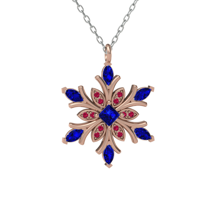 Lab safir ve rodolit garnet 925 ayar rose altın kaplama gümüş kolye (40 cm beyaz altın rolo zincir)