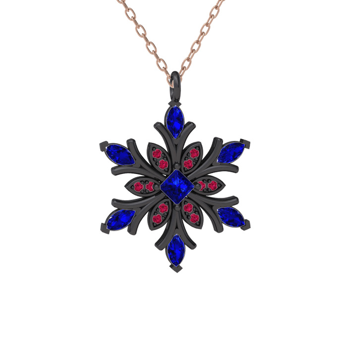 Lab safir ve rodolit garnet 925 ayar siyah rodyum kaplama gümüş kolye (40 cm gümüş rolo zincir)