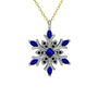 Lab safir ve siyah zirkon 18 ayar beyaz altın kolye (40 cm altın rolo zincir)