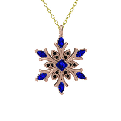 Lab safir ve siyah zirkon 18 ayar rose altın kolye (40 cm altın rolo zincir)