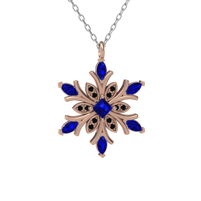 Lab safir ve siyah zirkon 18 ayar rose altın kolye (40 cm beyaz altın rolo zincir)