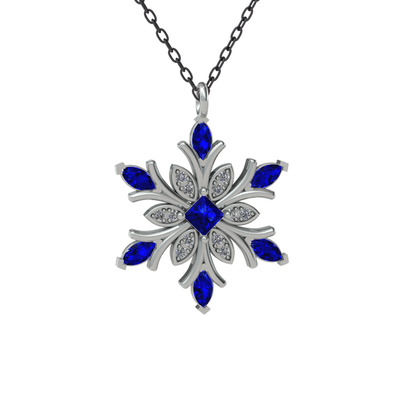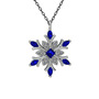 Lab safir ve swarovski 14 ayar beyaz altın kolye (40 cm gümüş rolo zincir)