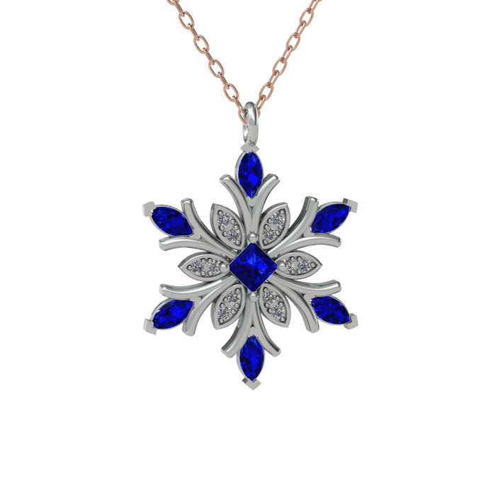 Lab safir ve swarovski 925 ayar gümüş kolye (40 cm gümüş rolo zincir)
