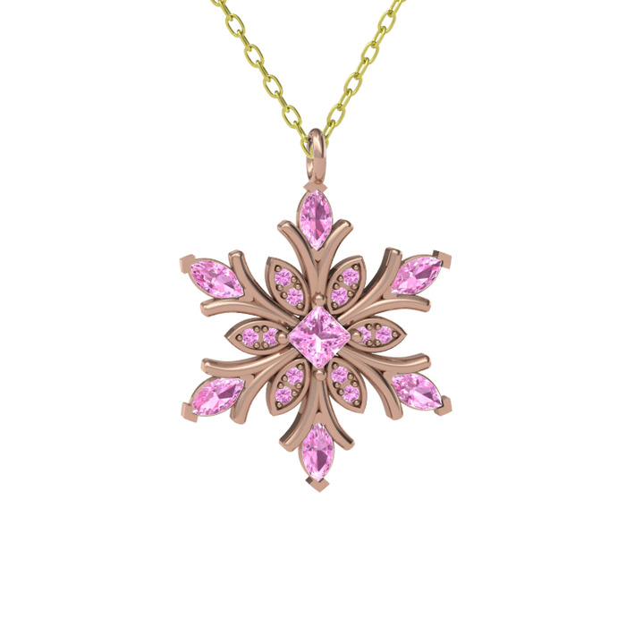 Pembe kuvars 18 ayar rose altın kolye (40 cm altın rolo zincir)