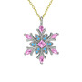 Pembe kuvars ve akuamarin 14 ayar beyaz altın kolye (40 cm altın rolo zincir)