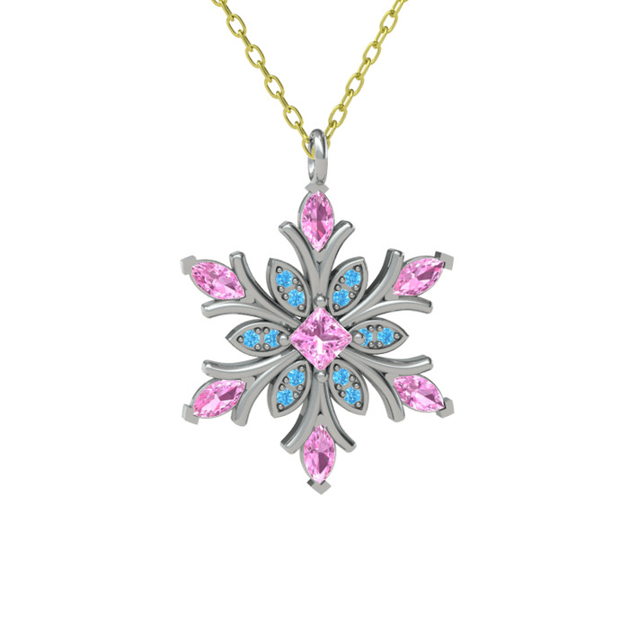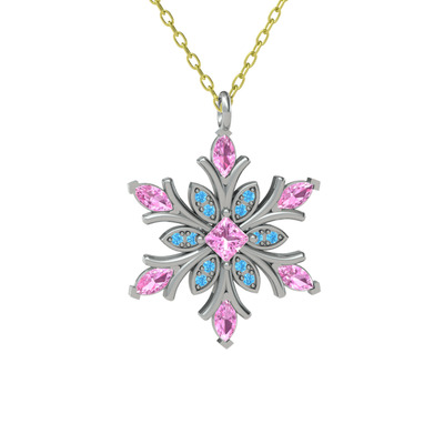 Pembe kuvars ve akuamarin 18 ayar beyaz altın kolye (40 cm altın rolo zincir)