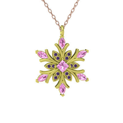Pembe kuvars ve ametist 18 ayar altın kolye (40 cm rose altın rolo zincir)