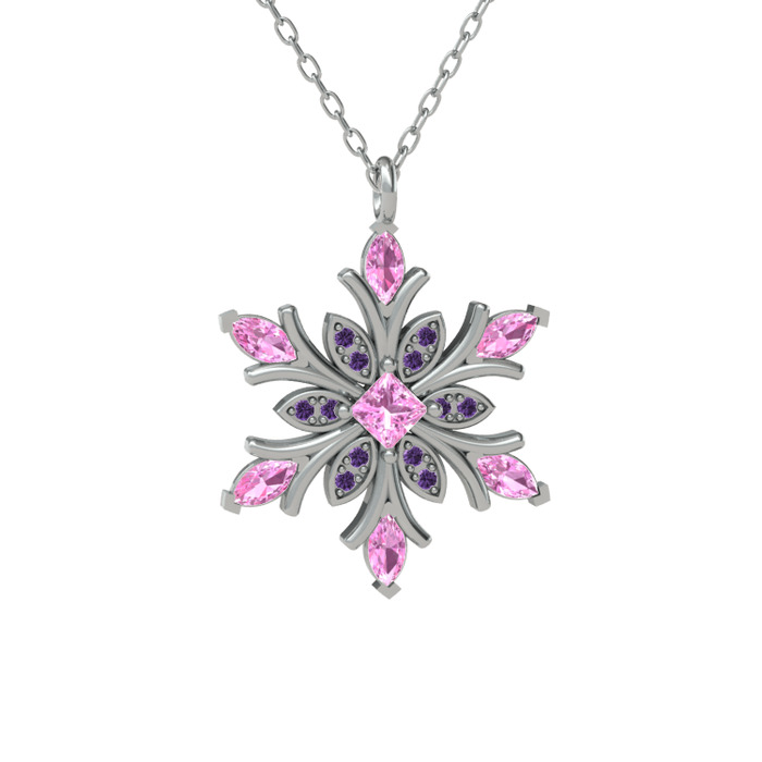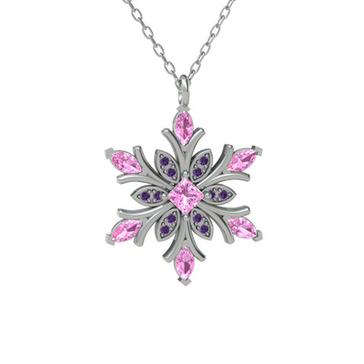 Pembe kuvars ve ametist 18 ayar beyaz altın kolye (40 cm beyaz altın rolo zincir)