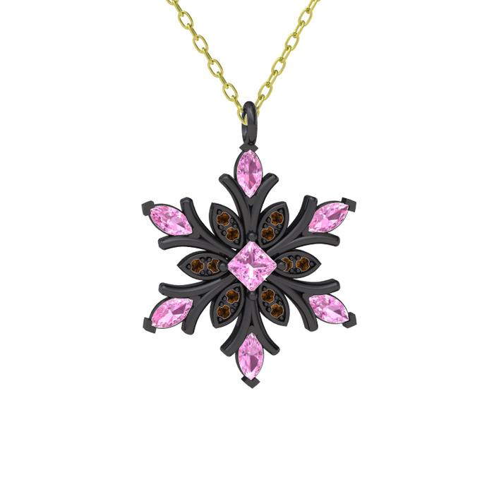 Pembe kuvars ve dumanlı kuvars 925 ayar siyah rodyum kaplama gümüş kolye (40 cm gümüş rolo zincir)
