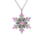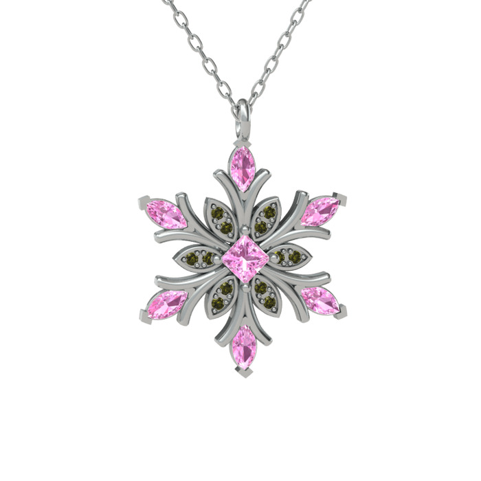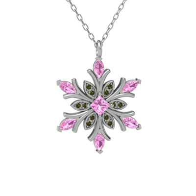 Pembe kuvars ve peridot 925 ayar gümüş kolye (40 cm beyaz altın rolo zincir)