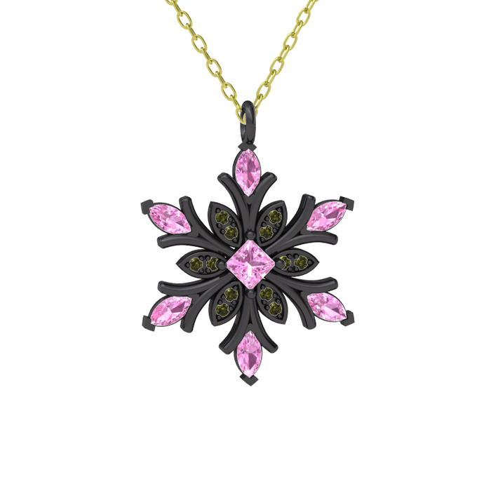 Pembe kuvars ve peridot 925 ayar siyah rodyum kaplama gümüş kolye (40 cm gümüş rolo zincir)