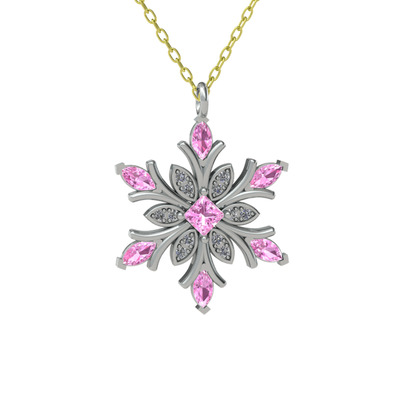 Pembe kuvars ve pırlanta 18 ayar beyaz altın kolye (0.1056 karat, 40 cm altın rolo zincir)