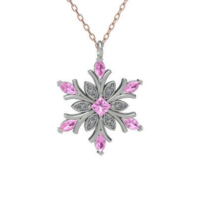 Pembe kuvars ve pırlanta 925 ayar gümüş kolye (0.1056 karat, 40 cm rose altın rolo zincir)