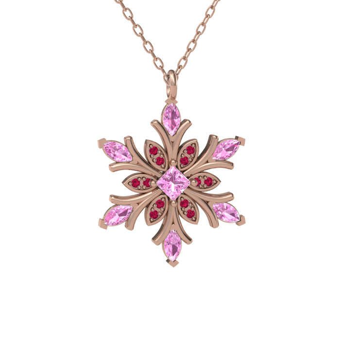 Pembe kuvars ve rodolit garnet 8 ayar rose altın kolye (40 cm rose altın rolo zincir)