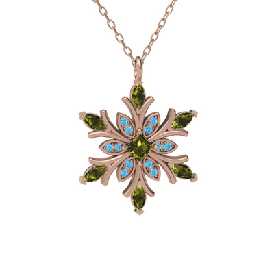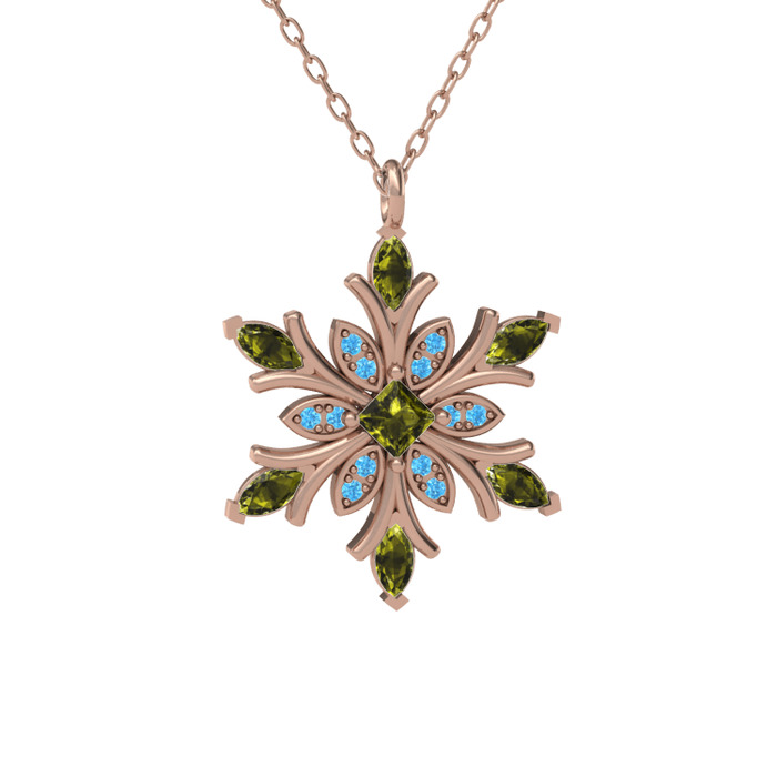 Peridot ve akuamarin 925 ayar rose altın kaplama gümüş kolye (40 cm gümüş rolo zincir)