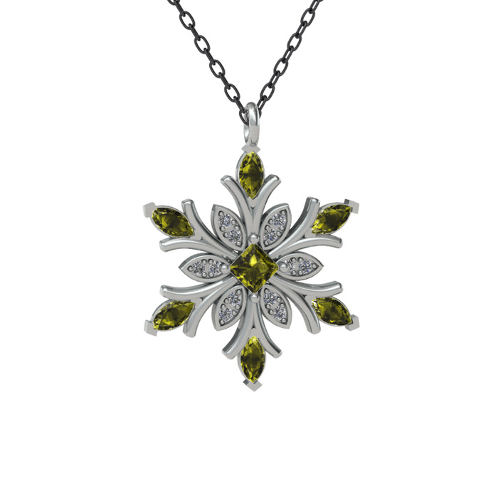 Peridot ve beyaz zirkon 8 ayar beyaz altın kolye (40 cm gümüş rolo zincir)