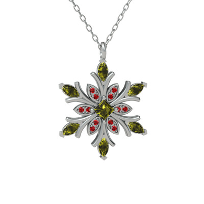 Peridot ve garnet 925 ayar gümüş kolye (40 cm gümüş rolo zincir)