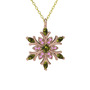 Peridot ve pembe kuvars 14 ayar rose altın kolye (40 cm gümüş rolo zincir)