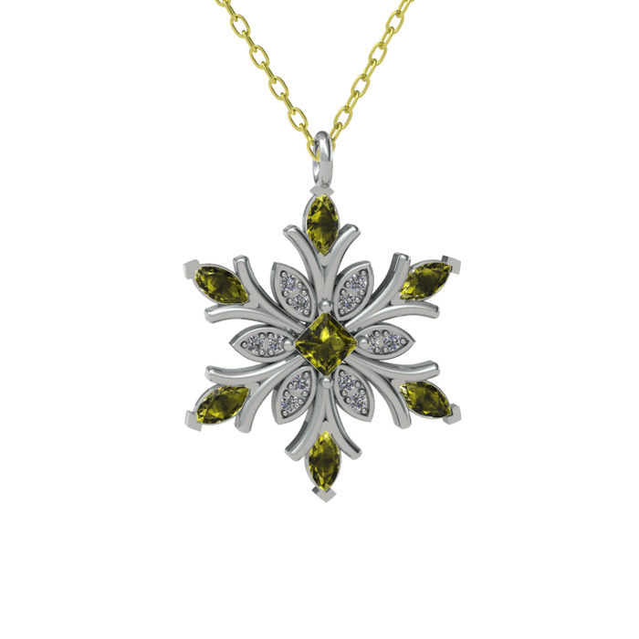 Peridot ve pırlanta 14 ayar beyaz altın kolye (0.1056 karat, 40 cm altın rolo zincir)