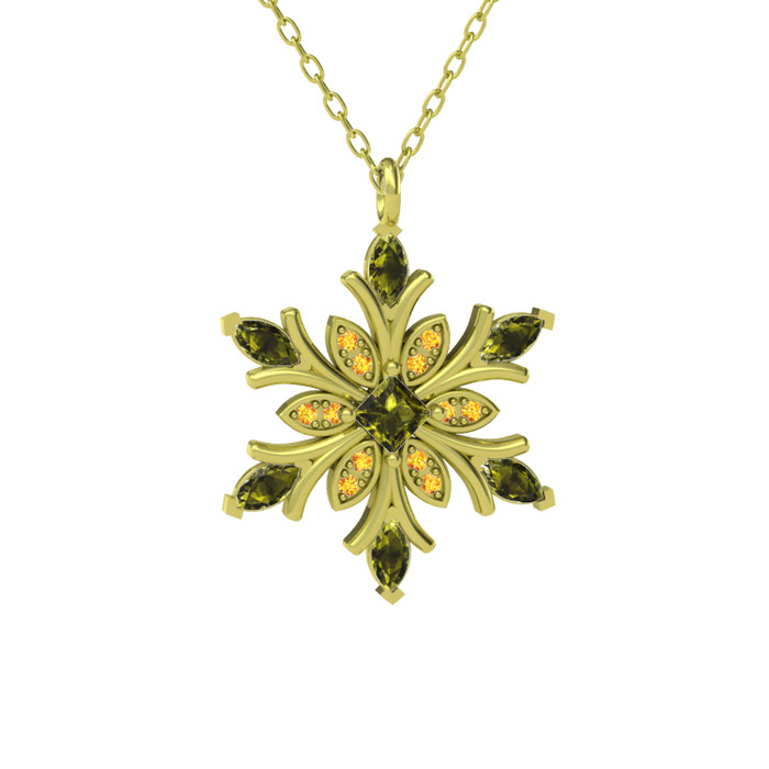 Peridot ve sitrin 14 ayar altın kolye (40 cm altın rolo zincir)