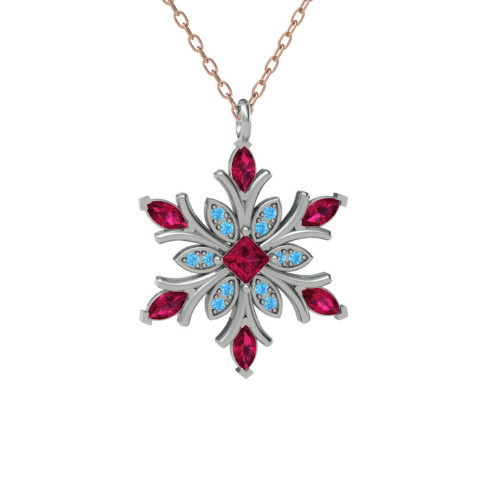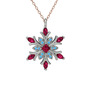 Rodolit garnet ve akuamarin 8 ayar beyaz altın kolye (40 cm rose altın rolo zincir)