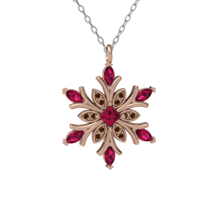 Rodolit garnet ve dumanlı kuvars 18 ayar rose altın kolye (40 cm beyaz altın rolo zincir)