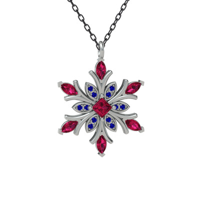 Rodolit garnet ve lab safir 8 ayar beyaz altın kolye (40 cm gümüş rolo zincir)